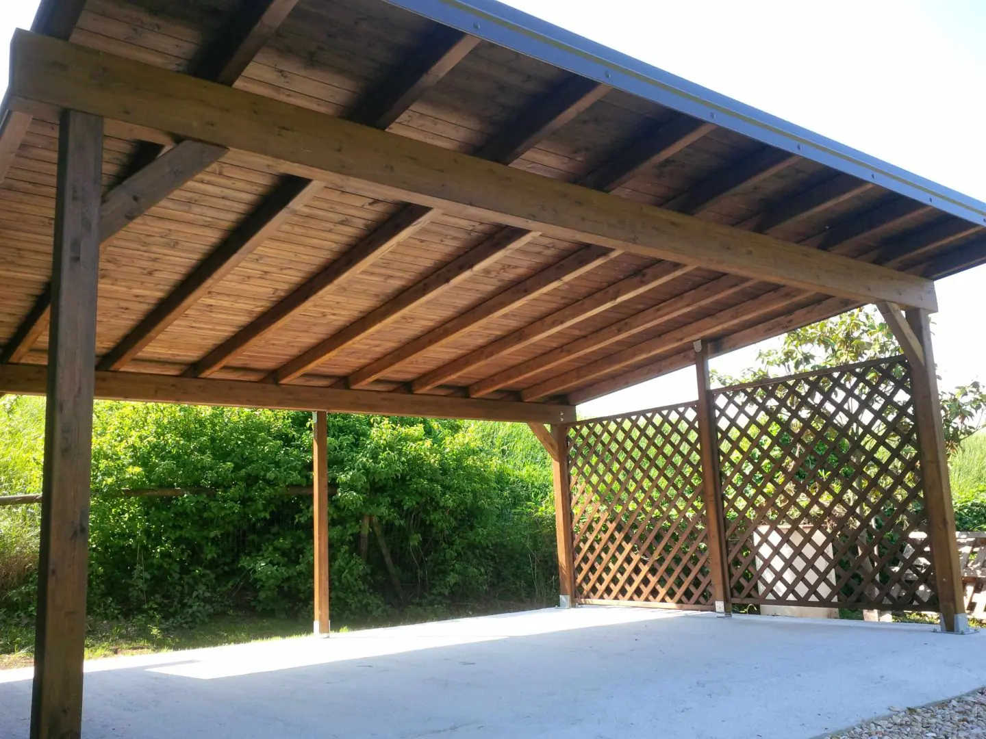 Навес размером 6 на 3 метра представляет собой прямоугольное укрытие, которое идеально подходит для создания тени или защиты от непогоды. Его размеры позволяют удобно разместить под ним обеденную зону, парковочное место для автомобиля или организовать уютное пространство для отдыха. Компактный, но функциональный, такой навес станет практичным дополнением к вашему участку.