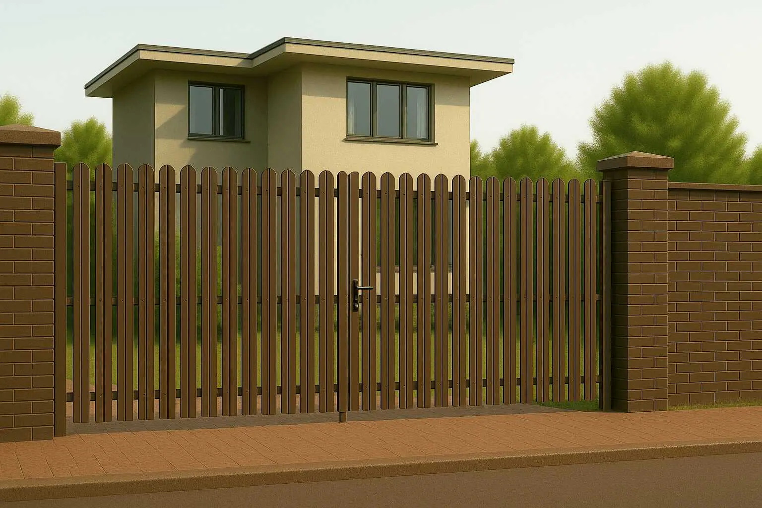Врезаем стальные усиленные блоки калитки в одну из створок. Это сохраняет профессиональный уровень защиты и оптимизирует пространство. Комплект включает все комплектующие — петли, замки, аксессуары. Готовые примеры можно увидеть в нашем каталоге продукции.
