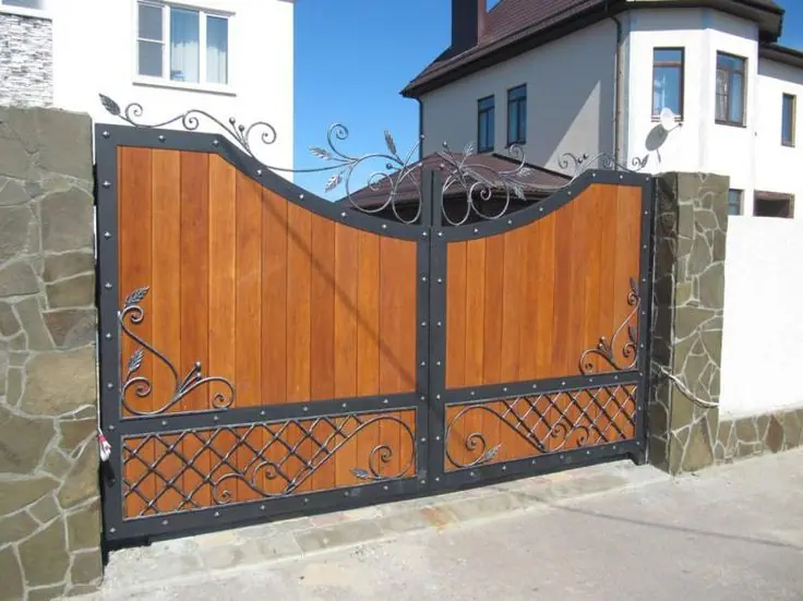 Также востребованы конструкции из дерева, которые органично смотрятся в загородном стиле. В премиальном сегменте используют кованые элементы, придающие воротам выразительность и статус.