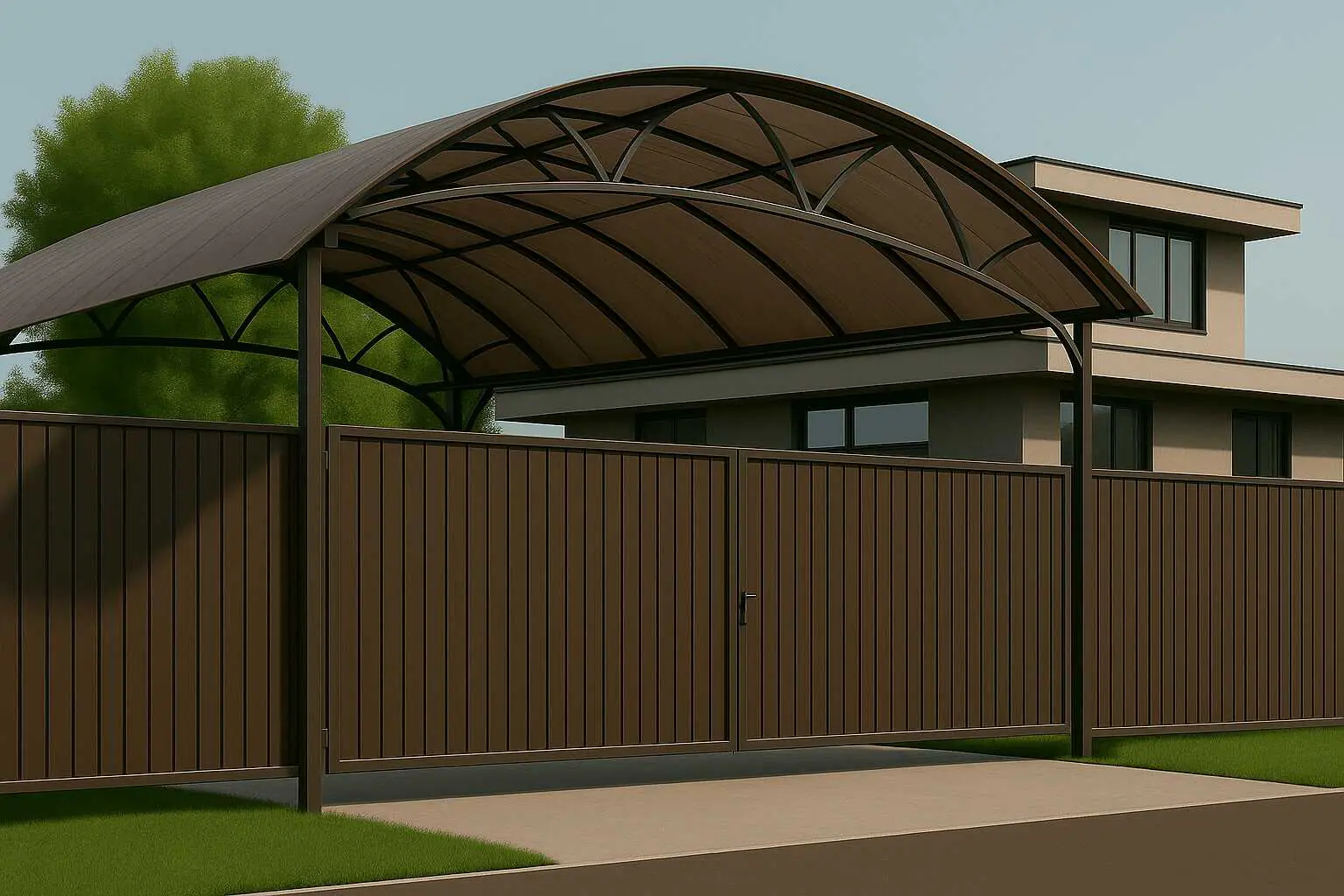 Материалы створок зависят от требований к дизайну, прочности и бюджету. Наиболее популярны металлические решения с профлистом или сэндвич-панелями — они долговечны и устойчивы к коррозии.