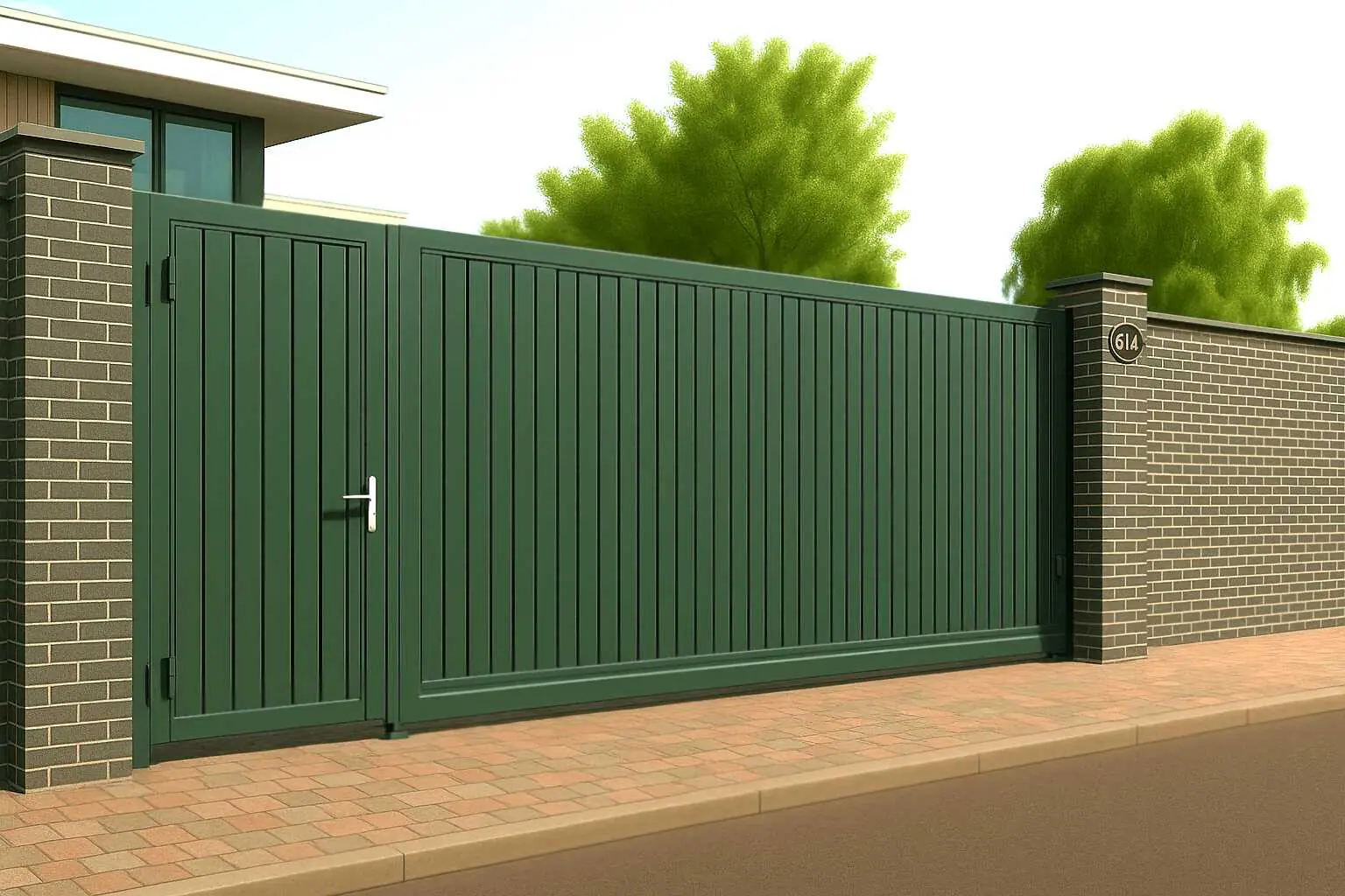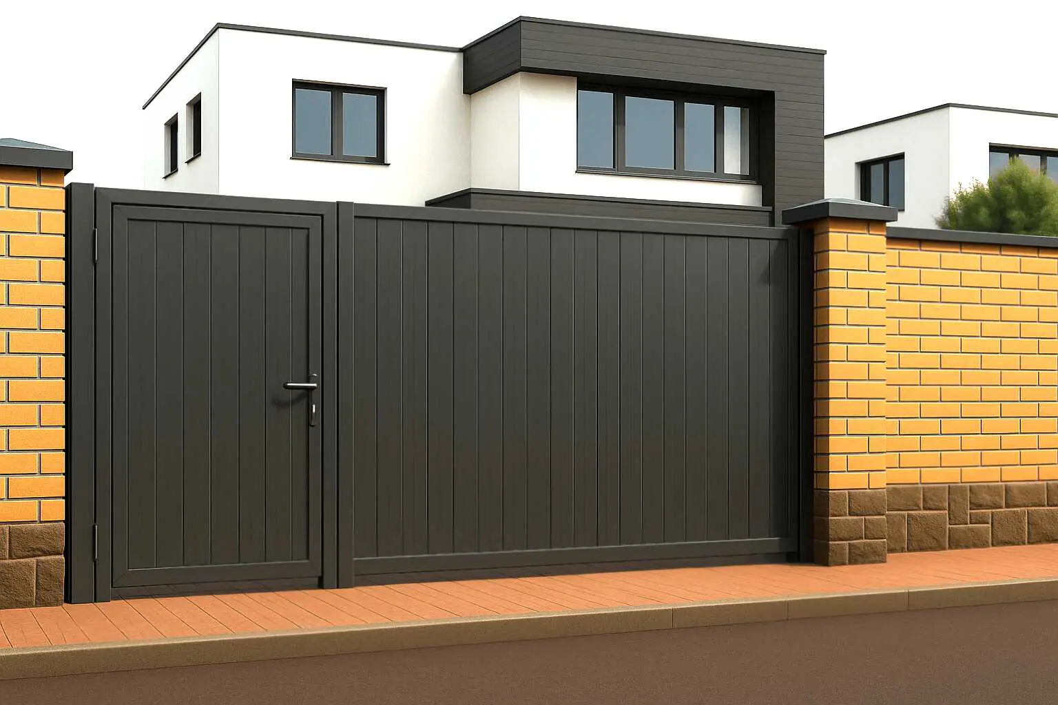 Врезаем стальные усиленные блоки калитки в одну из створок. Это сохраняет профессиональный уровень защиты и оптимизирует пространство. Комплект включает все комплектующие — петли, замки, аксессуары. Готовые примеры можно увидеть в нашем каталоге продукции.
